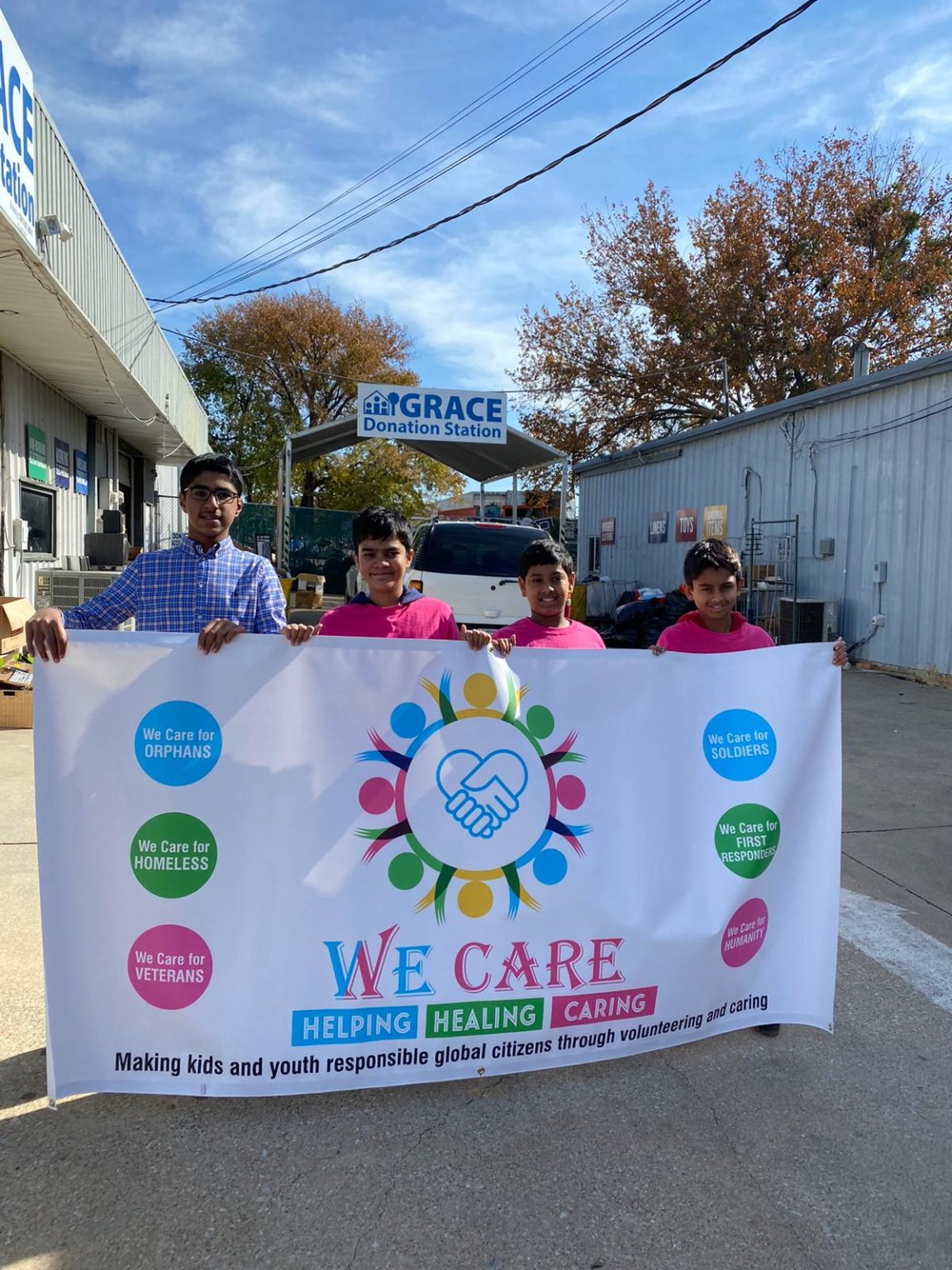 Young volunteers from DFW metroplex came forward on Nov 16, 2019 in Helping out at GRACE Grapevine Donation station.At a tender age when kids like to play, these kids have taken up a big task to change the world!Although young at age, they are proving that they have BIG hearts! WeCARE is an organization floated by young citizens of America who want to change the world by making a positive impact. Among many initiatives undertaken the youngsters reached out to Grace Church in Grapevine and offered help for the holiday season. Looking at their enthusiasm the representatives at the Church offered to seek their help. In no time these kids pulled over 30 members and helped in various forms at the Church. These included arranging clothes, placing toys, segregating electronics and much more.The representatives felt it was an absolute bliss to have the young citizens offer their help which otherwise would delay or deprive these holiday donations to the not so fortunate families. They honored these kids with token of gratitude for the selfless service done at the Grace Church and requested them to visit the Church regularly.The youngsters gladly agreed to come at a future date and promised to continue their acts of service!Among the ones who served at the Church wereSamraat Jangam, Yag Tripuram, Moksh Police, Shiv Police, Bhaavan Kolla, Avighna Boodidha, Amogh Boodidha, Bhanu Gouru, Abhiram Gouru, Dhanya Vuppaladadium, Karthi Vuppaladadium, Raana Yarlagadda, Aadhya Jonnalagadda, Anjali Ghanta, Vishwak Reddy Asha, Bhavdeep Naag Tummapala, Aniketh Naag Tummapala, Ritva Chandar, Siddharth Eleswarapu and few others.So the next time you meet any of these young citizens, please don’t forget to compliment them for their selfless acts of service!The mission of WeCARE is to make kids and youth responsible global citizens through volunteering for charitable organizations!